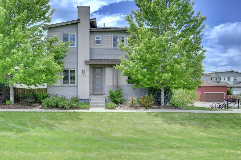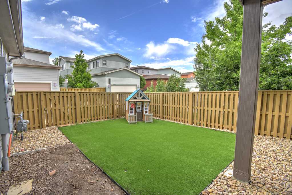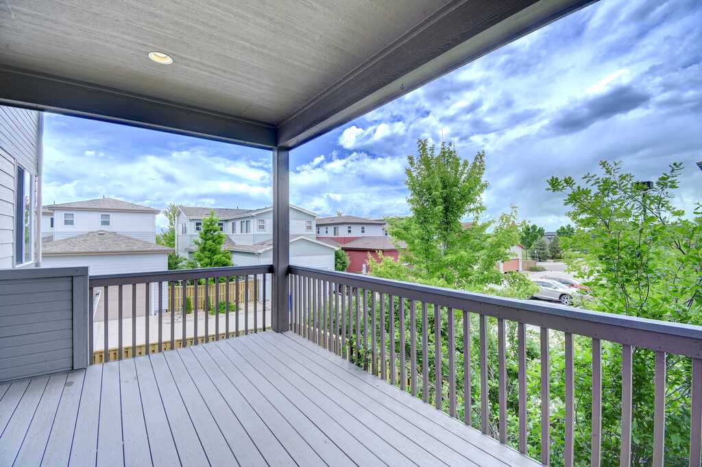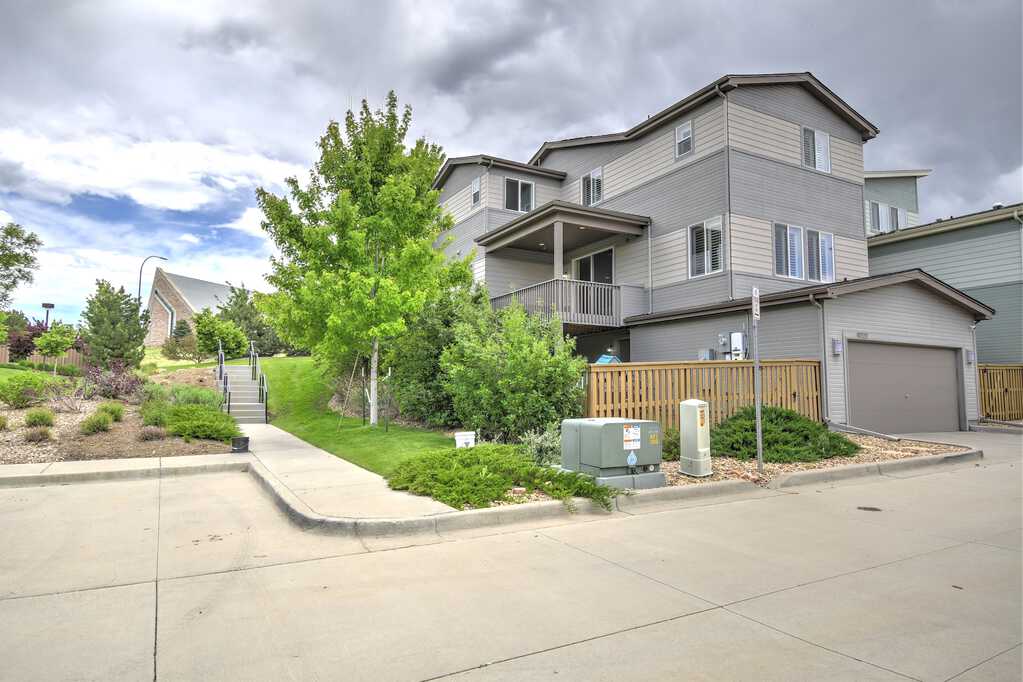 Enjoy living in this spacious and bright 3 bed, 3 bath, plus main floor office home in Spaces at Highlands Ranch! Contemporary, upscale living abounds – including upgraded luxury vinyl flooring, new carpet, designer lighting, and open concept layout. Kitchen features custom cabinets with pull out drawers, stainless steel appliances, large range, and high end countertops with under mount sink. Wide open entertaining spaces with eating options at the formal dining room or the large kitchen island. Relax in the cool summer evenings with family & friends on the massive covered deck right off of the kitchen. Oversized master suite includes large vanity with dual sinks, gorgeous tiled low-entry shower, custom barn doors, and walk-in closet. Two additional bedrooms, full bath, and laundry hookups upstairs. MOUNTAIN VIEWS of Evans and Longs Peak from multiple rooms. Two car garage with extra space for storage. Cozy low maintenance side yard with turf area. Fantastic location within the neighborhood and adjacent to HOA maintained greenbelt area. Quick access to shopping, schools – including Valor, parks, trails, recreation centers, and highway! MUST SEE!