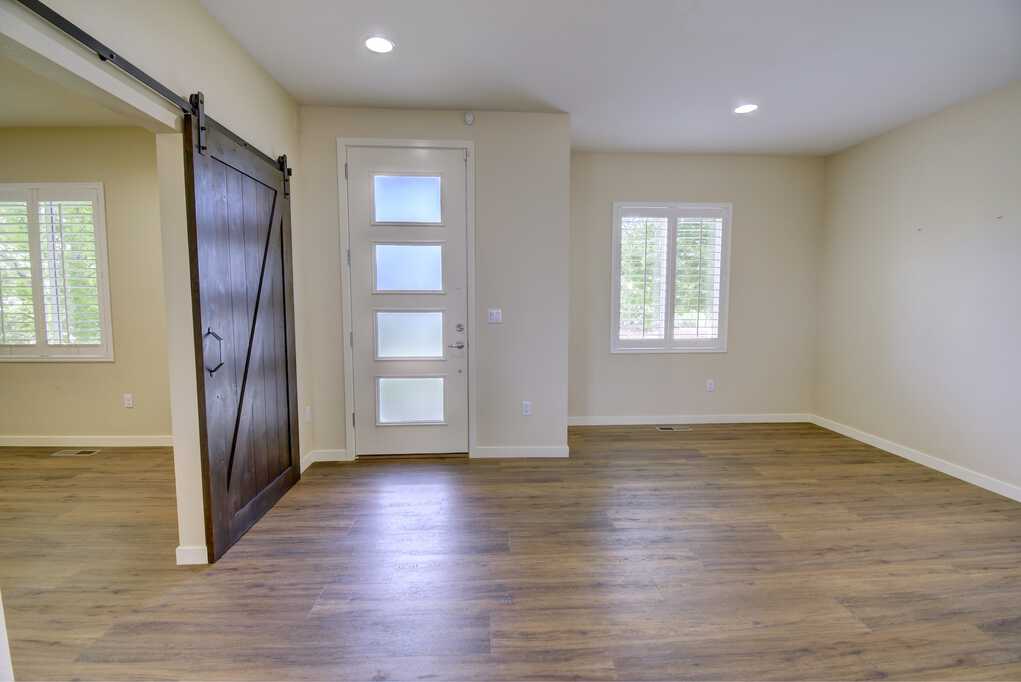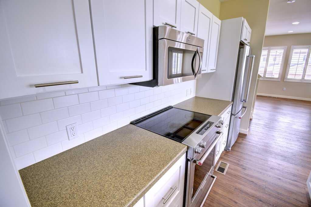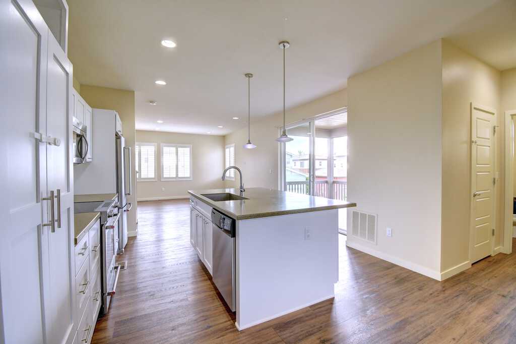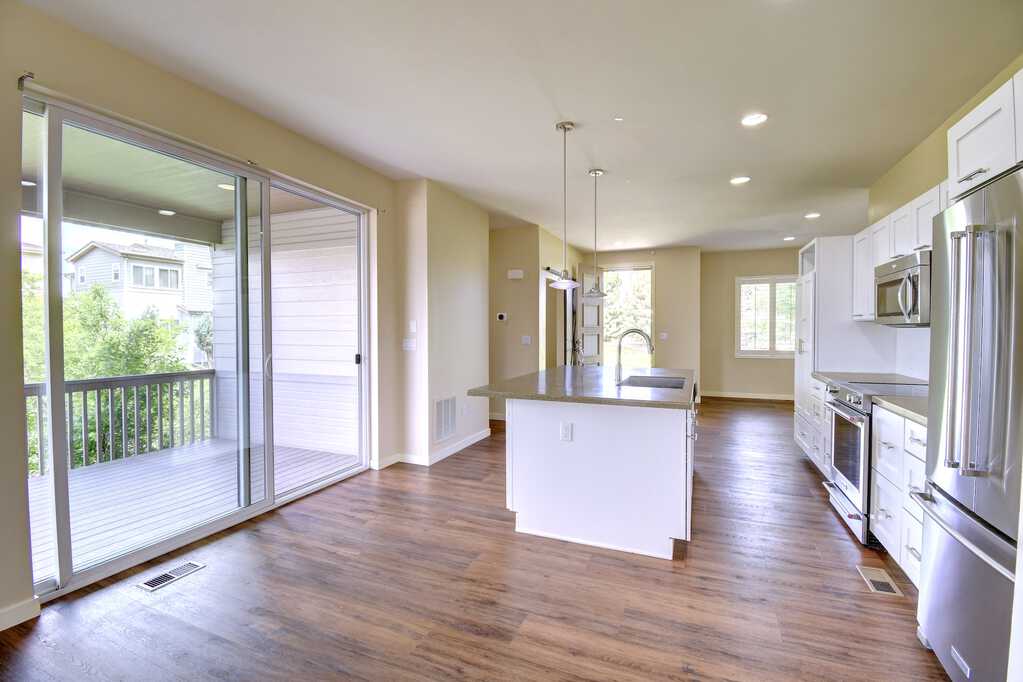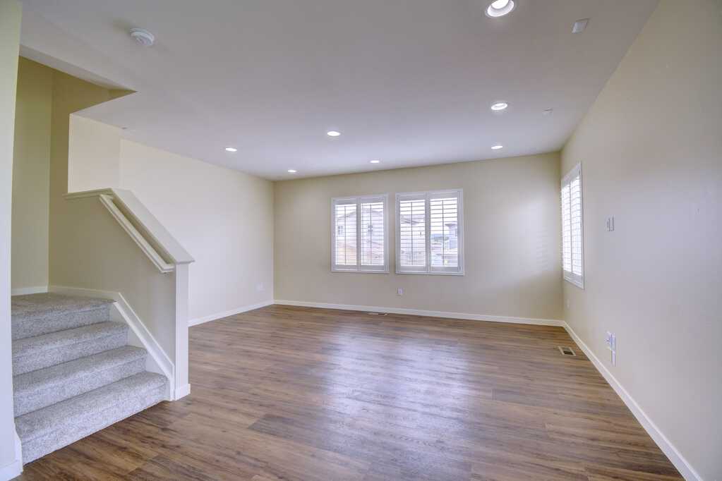 Enjoy living in this spacious and bright 3 bed, 3 bath, plus main floor office home in Spaces at Highlands Ranch! Contemporary, upscale living abounds – including upgraded luxury vinyl flooring, new carpet, designer lighting, and open concept layout. Kitchen features custom cabinets with pull out drawers, stainless steel appliances, large range, and high end countertops with under mount sink. Wide open entertaining spaces with eating options at the formal dining room or the large kitchen island. Relax in the cool summer evenings with family & friends on the massive covered deck right off of the kitchen. Oversized master suite includes large vanity with dual sinks, gorgeous tiled low-entry shower, custom barn doors, and walk-in closet. Two additional bedrooms, full bath, and laundry hookups upstairs. MOUNTAIN VIEWS of Evans and Longs Peak from multiple rooms. Two car garage with extra space for storage. Cozy low maintenance side yard with turf area. Fantastic location within the neighborhood and adjacent to HOA maintained greenbelt area. Quick access to shopping, schools – including Valor, parks, trails, recreation centers, and highway! MUST SEE!